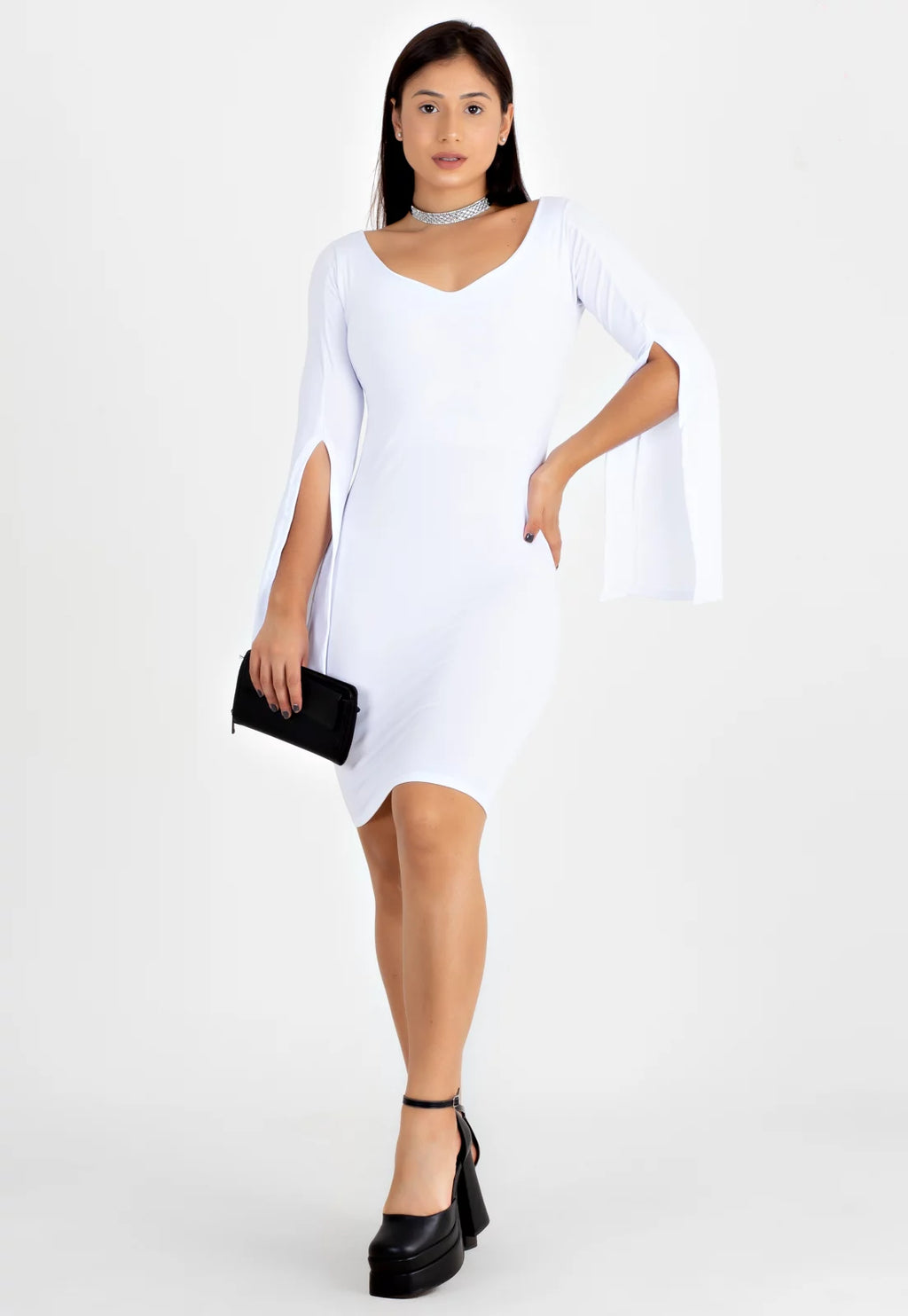 Vestido Midi Tubinho com Manga Longa Flare - OFF WHITE |NR47